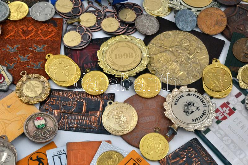 Leírás: Doboznyi főleg sporttal kapcsolatos emlékérem, díjérem, plakett, néhány mellszalagon, közte sérültek és utánveretek is T:vegyes