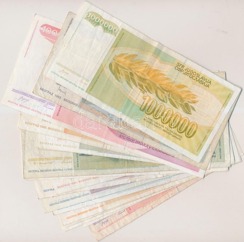 Yugoslavia 19... https://www.darabanth.com/hu/258-Gyorsarveres/258.0/Numizmatika/Kulfoldi-bankjegyek~400011/Jugoszlavia-1985-1994-10D-1000000D-12xklf-Tvegyes--Yugoslavia-1985-1994-10-Dinara--100000~II1265614