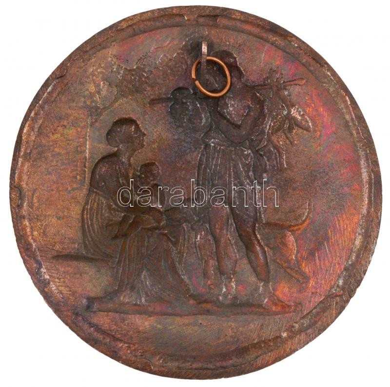 DN Bronz plakett antik vadász motívummal, hátoldalán akasztóval (130mm) T:2,2- kis ph.