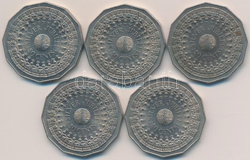 Leírás: Ausztrália 1977. 50c "Ezüst jubileum" (5x) T:1-,2 Australia 1977. 50 Cents "Silver Jubilee" (5x) C:AU,XF