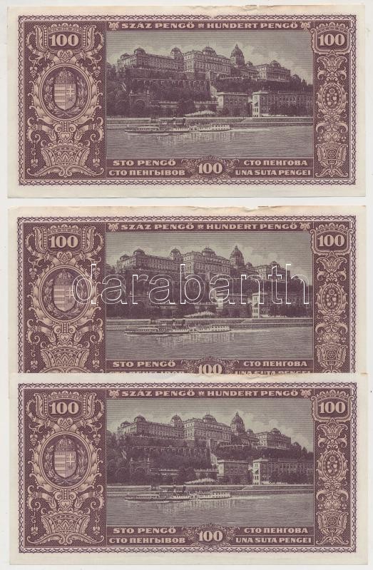 1945. 100P (3x) sorszámkövetők, "BÜNTETÉS" szóban "N" felett lemezhiba... https://www.darabanth.com/hu/258-Gyorsarveres/258.0/Numizmatika/Magyar-bankjegyek~400007/1945-100P-3x-sorszamkovetok-BUNTETES-szoban-N-felett-lemezhiba-TII-~II1265403