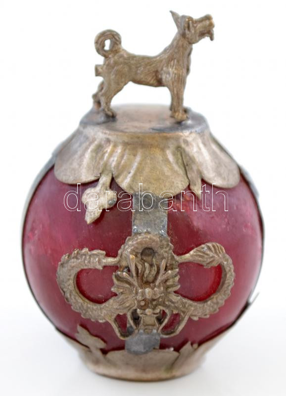 Leírás: Nagyméretű rodonit kutyás foglalatban, m: 5 cm