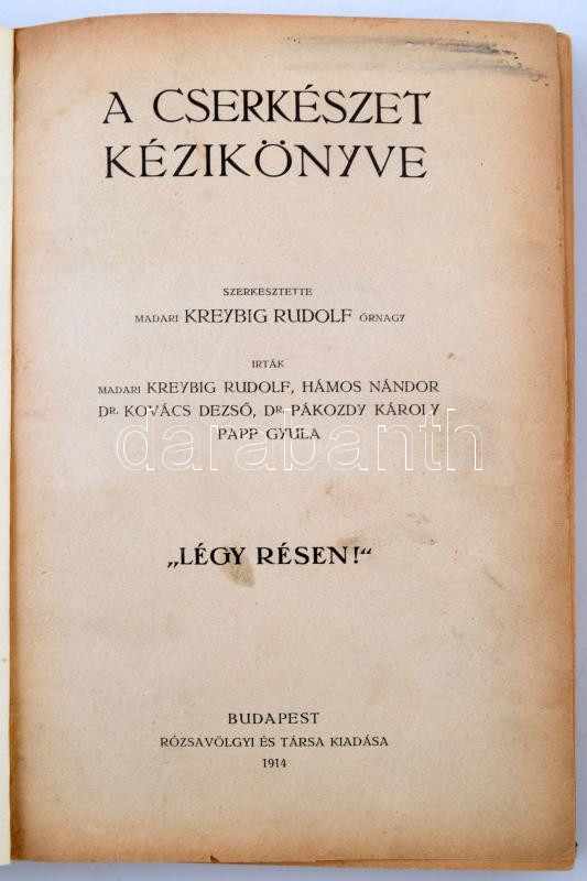 Leírás: Kreybig Rudolf: A Cserkészet kézikönyve. Bp., 1914. Rózsavölgyi. Kissé megviselt egészvászon kötésben. 290p.
