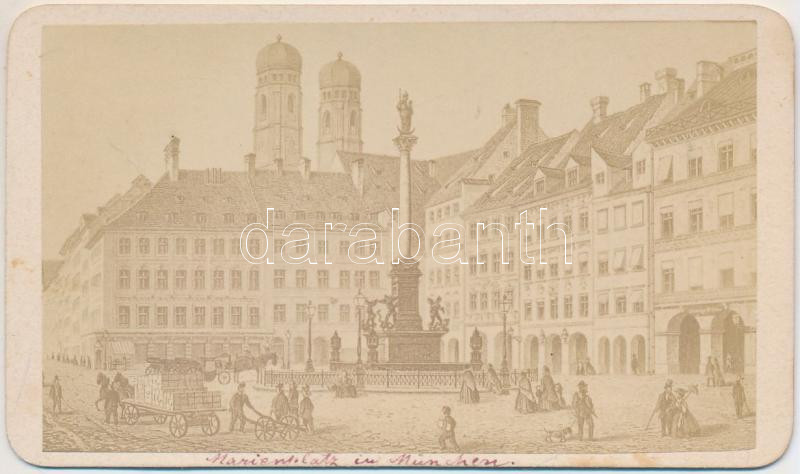 Leírás: 1868 München, Marien platz, keményhátú fotó, 6x10cm