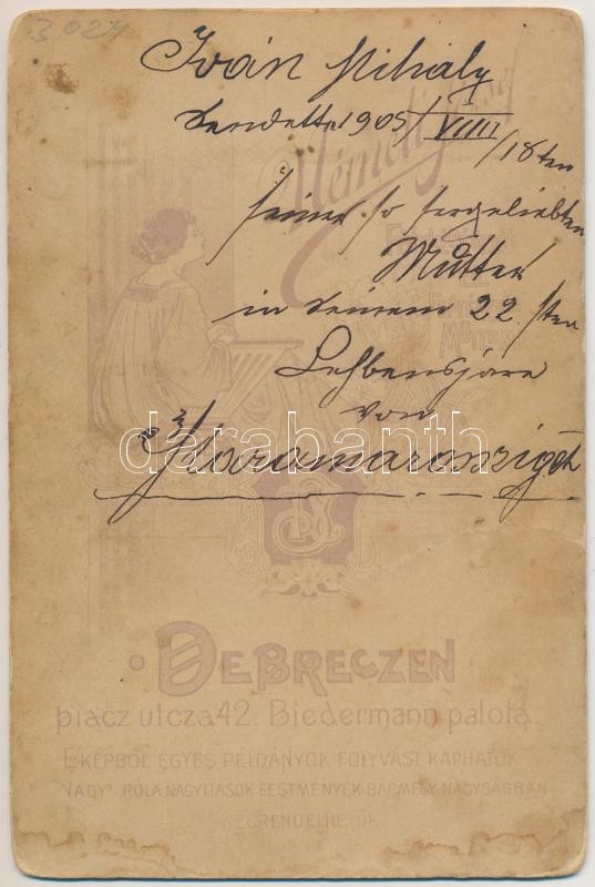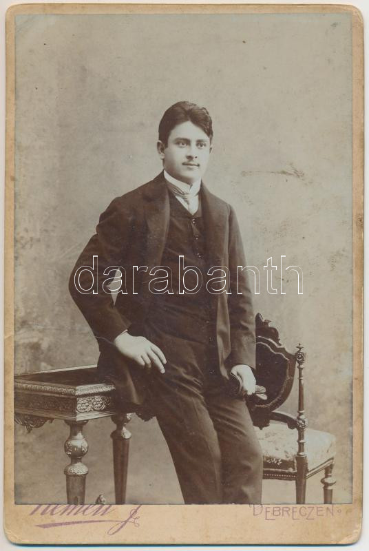 Leírás: 1905 Férfi portré (Iván Mihály) keményhátú fotó Németi Jósef Debreczeni műterméből, verzón feliratozva, 16x11cm