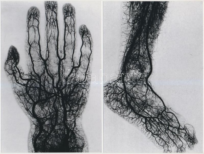 Leírás: 1910 Orvosi röntgen fotók az emberi érrendszerről, 4 db korabeli felvételről készült modern nagyítások, 18x12 cm