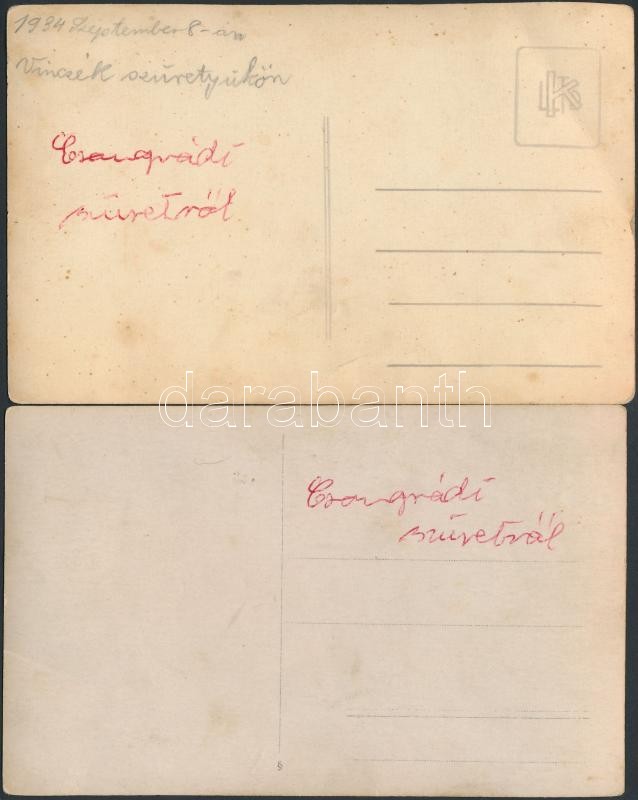 cca 1934 Csongrádi szüret. 2 db. Jelzetlen, hátoldalon feliratozva. 14... https://www.darabanth.com/hu/259-Gyorsarveres/259.0/Festmeny-mutargy-papirregiseg-egyeb/Foto~27/cca-1934-Csongradi-szuret-2-db-Jelzetlen-hatoldalon-feliratozva-14x9-cm~II1278340