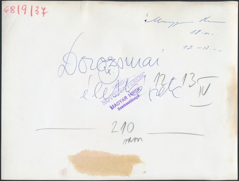 Leírás: cca 1968 Dorozsmai életképek: Kocsmai életképek. Novotta Ferenc felvétele.Sajtófotó, hátoldalán pecséttel jelzett, feliratozva. 24x18 cm.