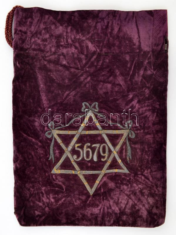 1919 Bájtli bársony tartó, hímzett, monogramos, 25x35cm https://www.darabanth.com/hu/259-Gyorsarveres/259.0/Festmeny-mutargy-papirregiseg-egyeb/Judaika~22/1919-Bajtli-barsony-tarto-himzett-monogramos-25x35cm~II1279093