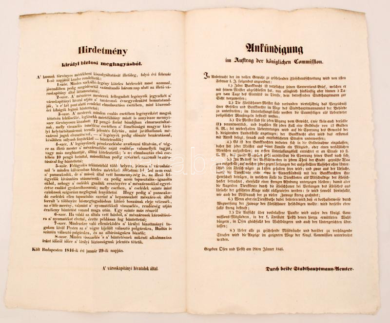 1846 Hirdetmény királyi biztosi meghagyásból, magyar és német nyelven,... https://www.darabanth.com/hu/259-Gyorsarveres/259.0/Festmeny-mutargy-papirregiseg-egyeb/Nyomtatvanyok~42/1846-Hirdetmeny-kiralyi-biztosi-meghagyasbol-magyar-es-nemet-nyelven-szep-allapotban-41x4~II1276665