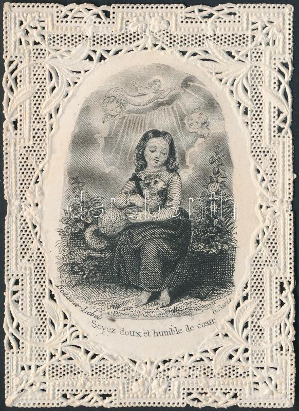 Leírás: cca 1900 Csipke szentkép szép állapotban, 7x5cm