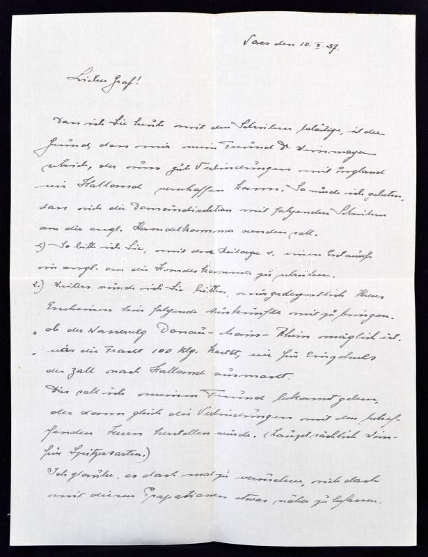 Leírás: 1937 Rajner Fülöp szász és gothai herceg saját kézzel írt levele Sternberg grófnak / Autograph letter of Philip Rayner