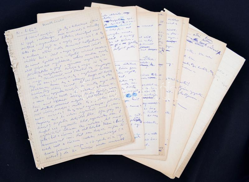 Leírás: cca 1950-1990 Hernádi Gyula (1926-2005) író, forgatókönyvíró saját kezű kéziratai, írásai, jegyzetei.