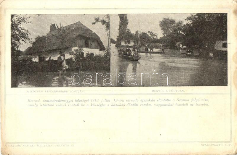 Berend, Berindan; az 1913-as árvíz képei, a Szamos Napilap helyszíni felvételei / the flood of 1913, pictures taken by the Szamos newspaper on the spot (EK)