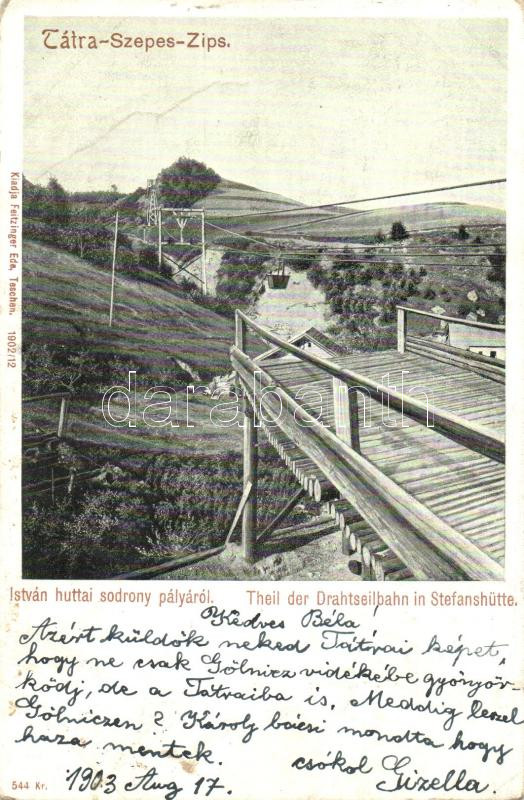 Istvánhuta, sodronypálya; Feitzinger Ede 1902/12 544 Kr. / ropeway tra... https://www.darabanth.com/hu/259-Gyorsarveres/259.0/Kepeslapok/Felvidek~300008/Istvanhuta-sodronypalya-Feitzinger-Ede-190212-544-Kr-ropeway-transport~II1278086