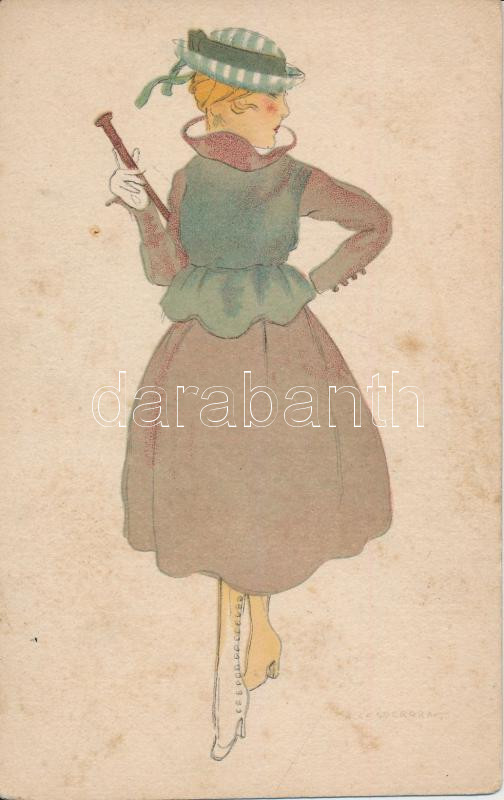 Leírás: Italian art postcard, lady, Ufficio Revisione Stampa di Milano N. 1189. 3225-3., artist signed (fl)