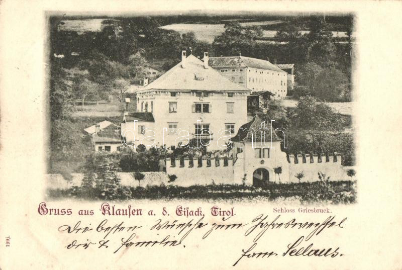 Chiusa, Klausen; Schloss Griesbruck (Tirol) / castle https://www.darabanth.com/hu/259-Gyorsarveres/259.0/Kepeslapok/Olaszorszag~300052/Chiusa-Klausen-Schloss-Griesbruck-Tirol-castle~II1278396