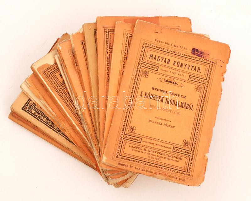 Leírás: 12 kötet a Lampel-féle Magyar Könyvtár sorozatból. Vegyes állapotban, néhány kötet papírborítója a gerinc mentén szakadozott, levált.