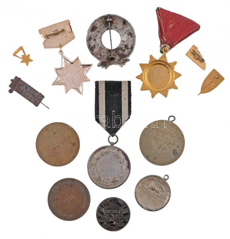 12db-os vegyes magyar és külföldi jelvény tétel, benne "II. Rákóczi Ferenc Gimnázium", "Vilnius", "Magyar Athletikai Club", "Gott Schütze dich", "V Éves Önkéntes Tűzoltói Szolgálatért / Belügyminisztérium Országos Tűzrendészeti Parancsnoksága" T:vegyes