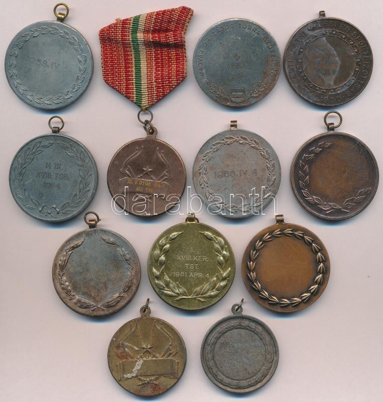 Leírás: 12db vegyes szocialista sportérem T:2,2-