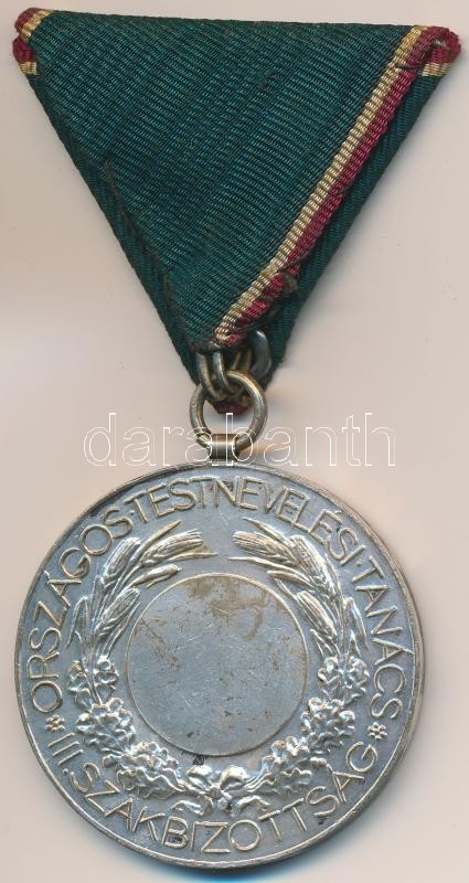 Berán Lajos (1882-1943) 1929. "Országos Testnevelési Tanács - III. Szakbizottság" ezüstözött Br díjérem mellszalaggal, "BRONZ" beütéssel a peremen (45mm) T:2