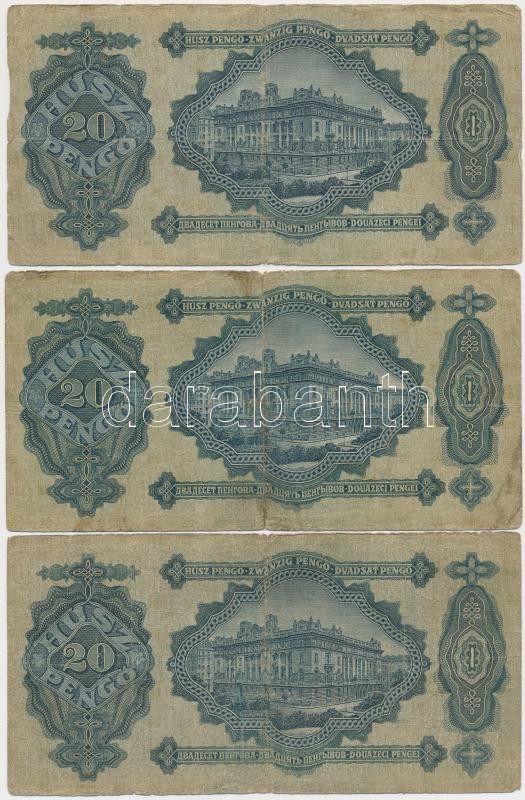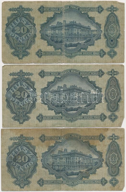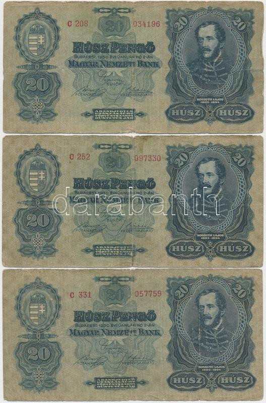 1930. 20P (6x) T:III,III- https://www.darabanth.com/hu/259-Gyorsarveres/259.0/Numizmatika/Magyar-bankjegyek~100008/1930-20P-6x-TIII-III-~II1278363