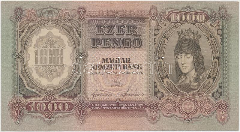 Leírás: 1943. 1000P nyomdai papírránccal T:II szép papír