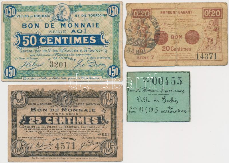 Leírás: Franciaország 1914-1917. 4db klf szükségpénz T:III
