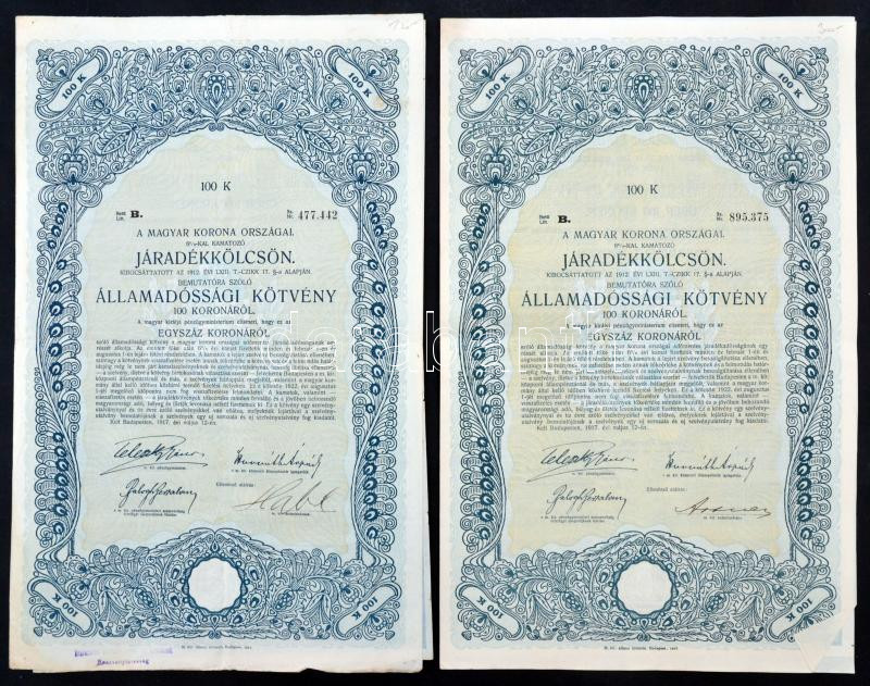 Leírás: Budapest 1917. "A Magyar Korona Országai 6%-kal kamatozó Járadékkölcsön" államadóssági kötvénye 100K-ról szelvényekkel (2x) T:II,III