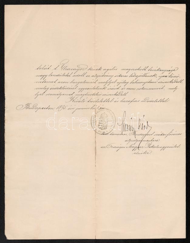 Leírás: 1895 Gerlóczy Károly (1835-1900) budapesti alpolgármester, később polgármester aláírása hivatalos levélen