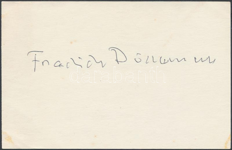 ... https://www.darabanth.com/hu/26-Nagyaukcio/26.1/Festmeny-mutargy-papirregiseg-egyeb/Alairas~10266/1982-Friedrich-Durrenmatt-1921-1990-dramairo-alairasa-papirlapon-----1982-Signature-of-Fr~II1462712