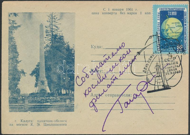 Jurij Alekszejevics Gagarin (1934-1968) szovjet űrhajós aláírása emlékborítékon / Signature of Yuriy Alekseyevich Gagarin (1934-1968) Soviet astronaut on envelope