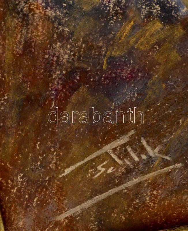 Leírás: Sztelek Norbert (1884-1956): Felsőfernezelyi aranybánya. Pasztell, papír, keretben, 45×80 cm