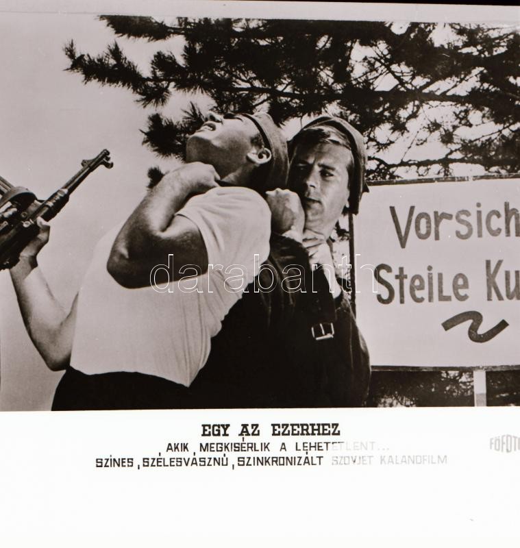 ,,Egy az ezerhez" című film állóképei, 22 db negatív, ezekről készültek a mozik előcsarnokában kiállított, új filmek reklámozására szolgáló fényképek, 4x7 cm