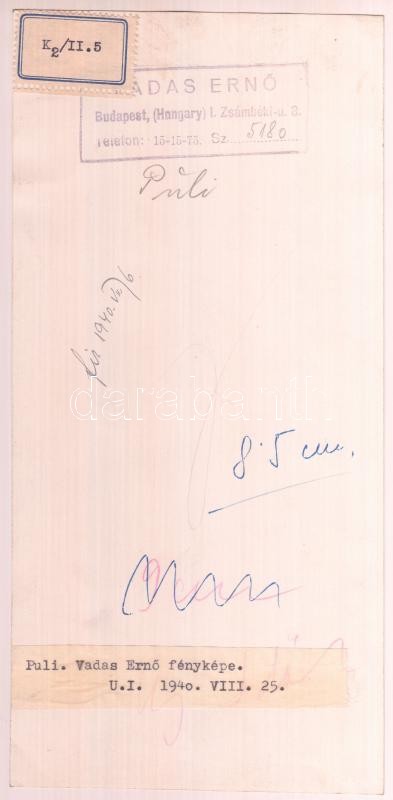 Leírás: 1940 Vadas Ernő (1899-1962): Puli. Pecséttel jelzett vintage fotóművészeti alkotás, 24×11.5 cm