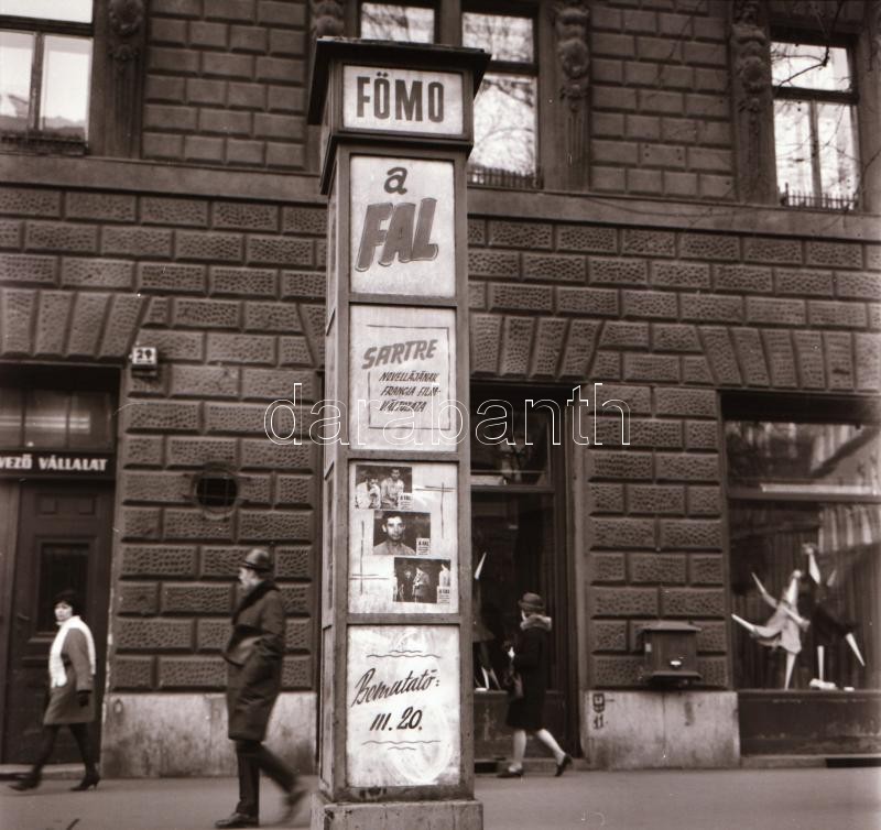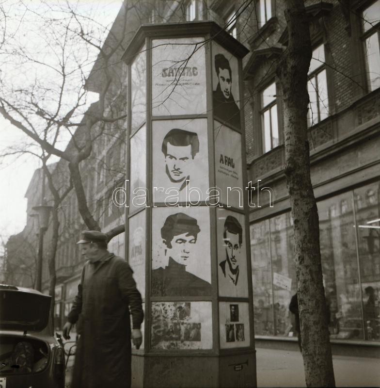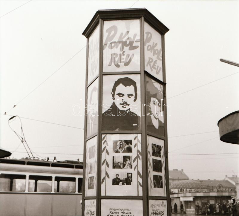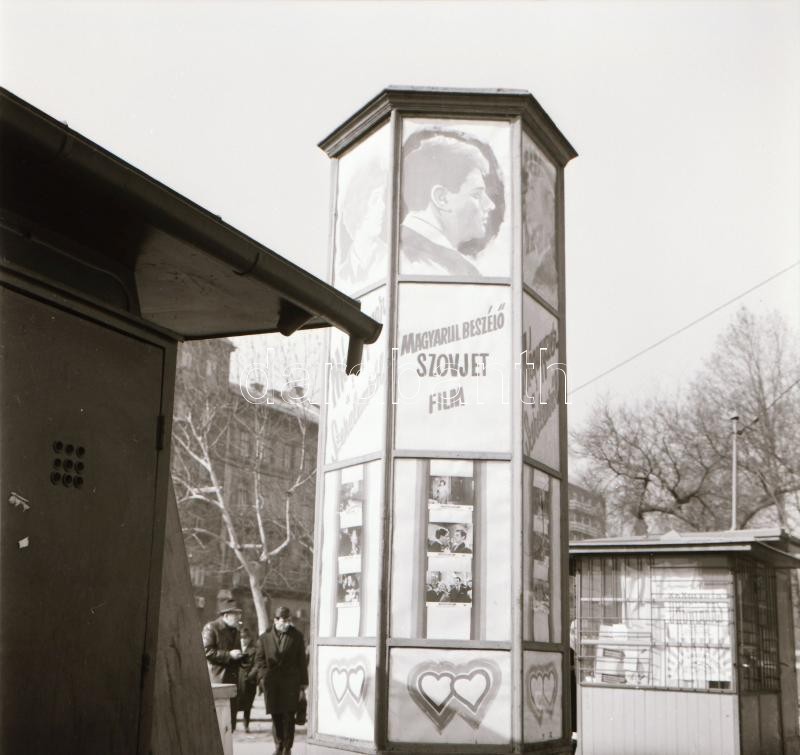 1969 Budapest, a Fővárosi Moziüzemi Vállalat hirdető oszlopai, plakáthelyei, kirakatai, ahol az új filmeket hirdették, 13 db szabadon felhasználható vintage negatív, 6x6 cm