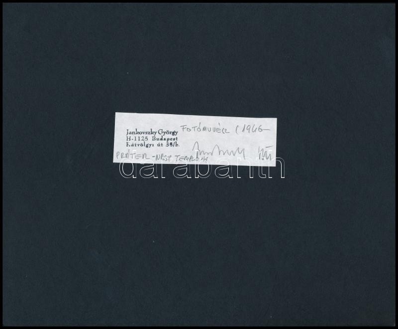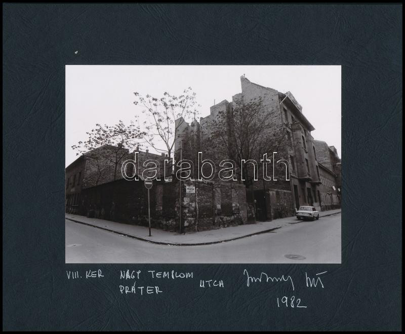 1982 Jankovszky György(1946-): Budapest VIII. kerület a Nagy Templom és a Práter utca sarka, feliratozva, aláírt, pecséttel jelzett, kartonra kasírozva, 12,5x18 cm