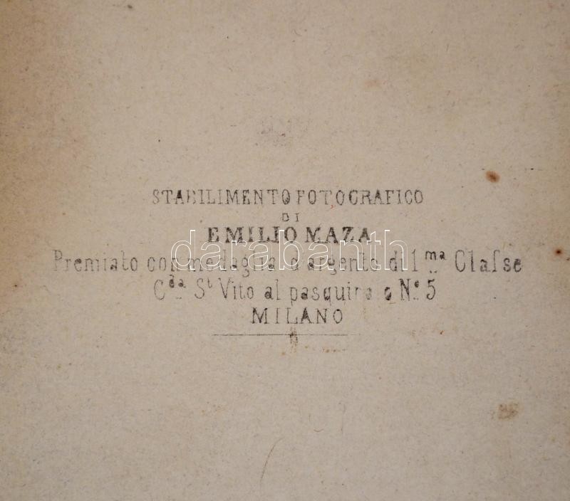 Leírás: cca 1862 Verebélyi Marzsó Lajos szabadságharcos huszárkapitány vizitkártya méretű, feliratozott fotója, Emilio Maza milánói műterméből, 10,5x6 cm