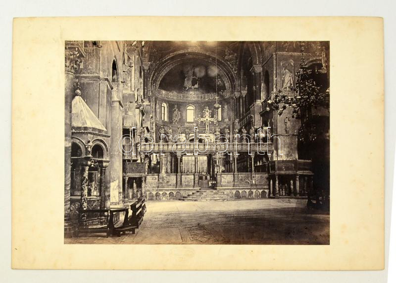 cca 1867 Carlo Ponti felvétele a velencei Szent Márk templomról, Unghváry Vilmos m. kir. főmérnök gyűjteményéből, 24x31,5 cm, karton 30x44 cm / Carlo Ponti: Venice, Italy, Saint Mark's Basilica, vintage photo, 24x30,5 cm
