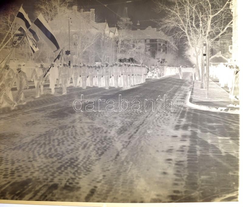 Leírás: cca 1928 Budapest, GANZ gyár tanoncainak bevonulása, évnyitója, eskütétele, 13 db vintage negatív, 9x12 cm