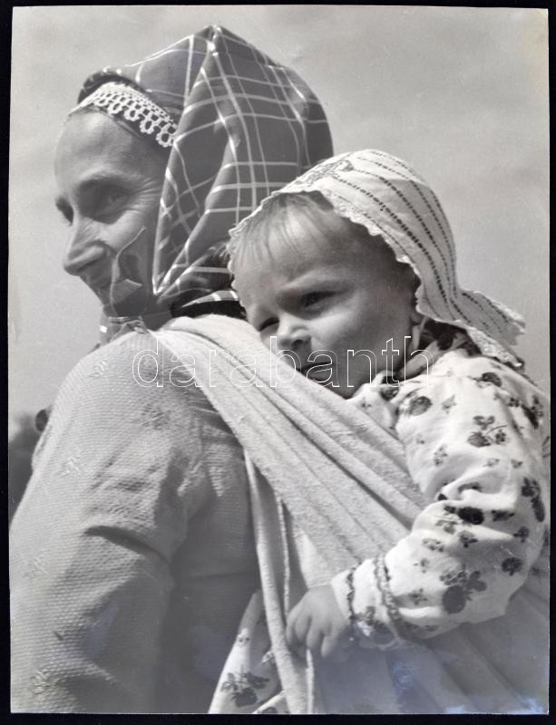 Leírás: cca 1935 Osoha László: Édes teher, pecséttel jelzett, kiállítási emlékjegyekkel ellátott vintage fotóművészeti alkotás, 36x27 cm