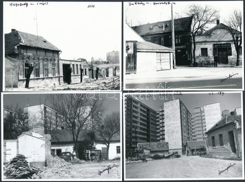 Leírás: cca 1968 Kecskeméti utcaképek, városképek, változások, 25 db vintage, feliratozott fotó Vincze János kecskeméti fotóművész hagyatékából, 8,5x11,5 cm