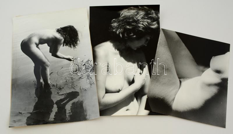 Leírás: cca 1975 Kalocsai Rudolf vintage fotóművészeti alkotásai, 3 db aktfotó, 40x26 cm és 30x24 cm