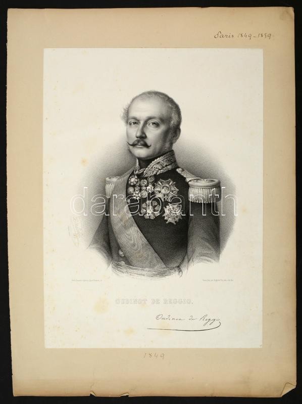 1851 Nicolas Charles Victor Oudinot de Reggio (1791-1863) francia tábornok, Reggio Calabria II. hercege nagyméretű kőnyomatos portréja. Zéphrin Belliard jelzett kőrajza / 1851 Nicolas Charles Victor Oudinot de Reggio (1791-1863) french military officer, second prince of Reggio Calabria Large lithographic image by Zéphrin Belliard. 29x39 cm