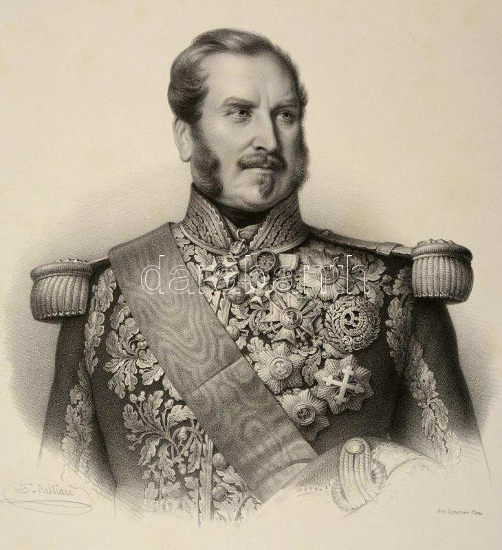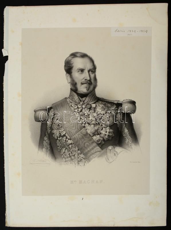 1854 Bernard Pierre Magnan (1791-1865) francia marsall nagyméretű kőnyomatos portréja. Belliard jelzett kőrajza. / 1854 Bernard Pierre Magnan (1791-1865) French marshall, military commander. Large lithographic image.Signed: