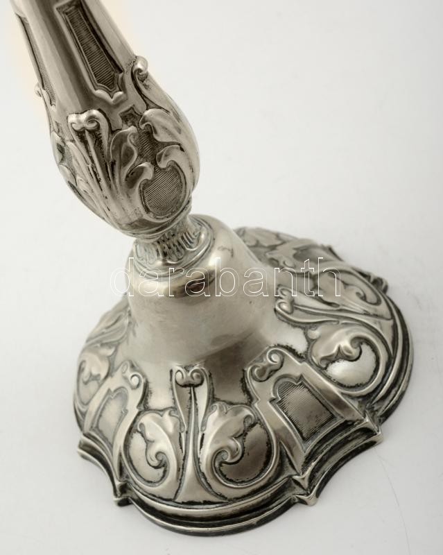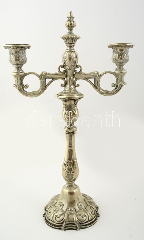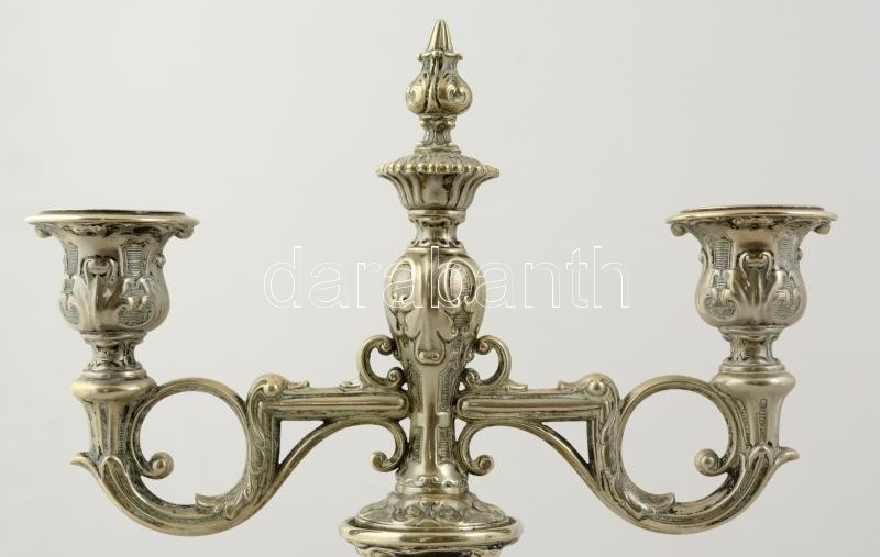 Berndorf kétágú gyertyatartó párban, Gazdagon díszített alpakka, súlyozott, jelzett, jó állapotban, kivehető felső résszel m:44 cm (2×) /