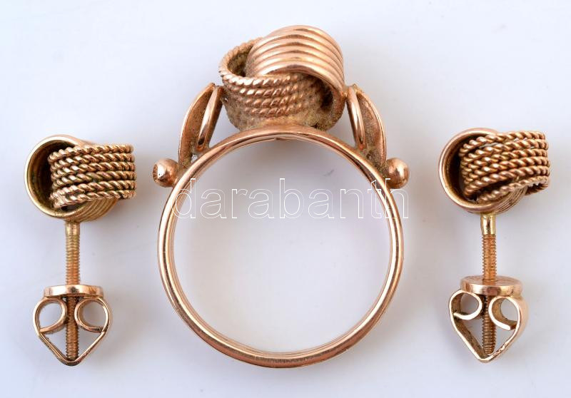 Egy pár 14K arany fülbevaló és gyűrűből álló szett / 14 C. gold set of... https://www.darabanth.com/hu/26-Nagyaukcio/26.1/Festmeny-mutargy-papirregiseg-egyeb/Nemesfem-Disztargyak-Orak-es-Ekszerek~10291/Egy-par-14K-arany-fulbevalo-es-gyurubol-allo-szett-14-C-gold-set-of-earrings-and-ring-8-~II1490896