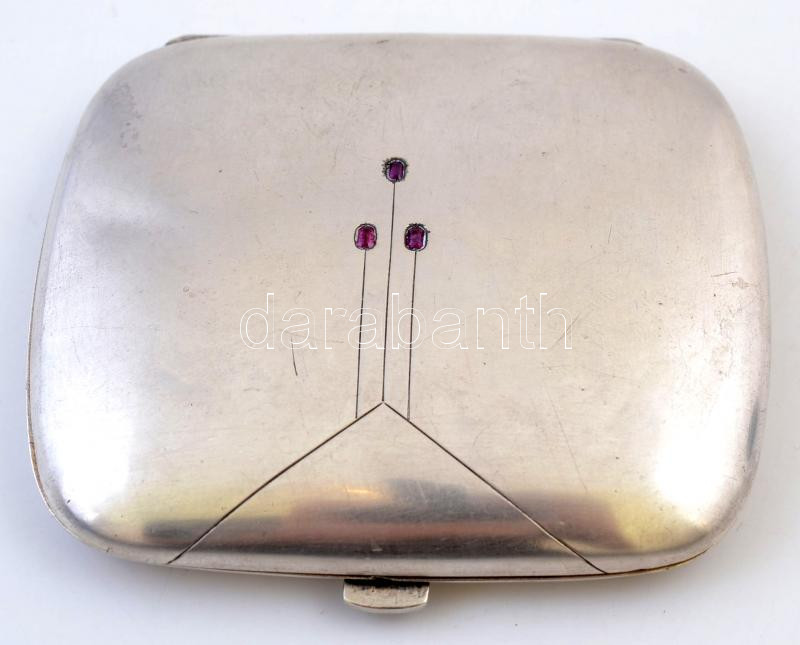 Leírás: Ezüst(Ag) art deco cigarettatárca rubin kövekkel, jelzett, 9x8 cm, nettó: 96,9 g / Silver art deco cigarette case with ruby, hallmark