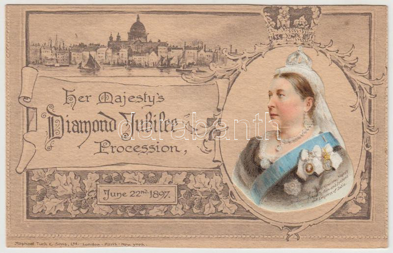 1897 Belépőjegy Viktória királynő gyémánt jubileumának ünnepségégre. A királynő litografált képével /