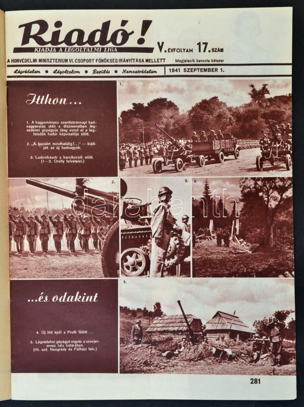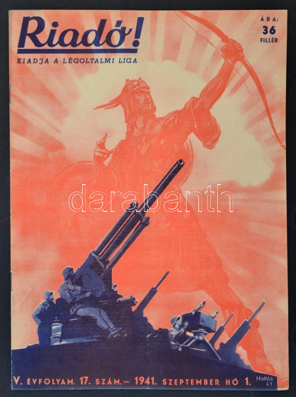 1941 A Riadó! A Légoltalmi Liga lapja V. évfolyamának 17. száma https://www.darabanth.com/hu/26-Nagyaukcio/26.1/Festmeny-mutargy-papirregiseg-egyeb/Nyomtatvanyok~10311/1941-A-Riado-A-Legoltalmi-Liga-lapja-V-evfolyamanak-17-szama~II1487841